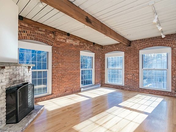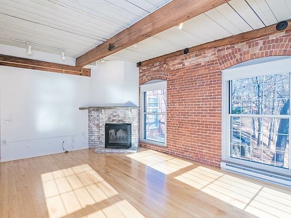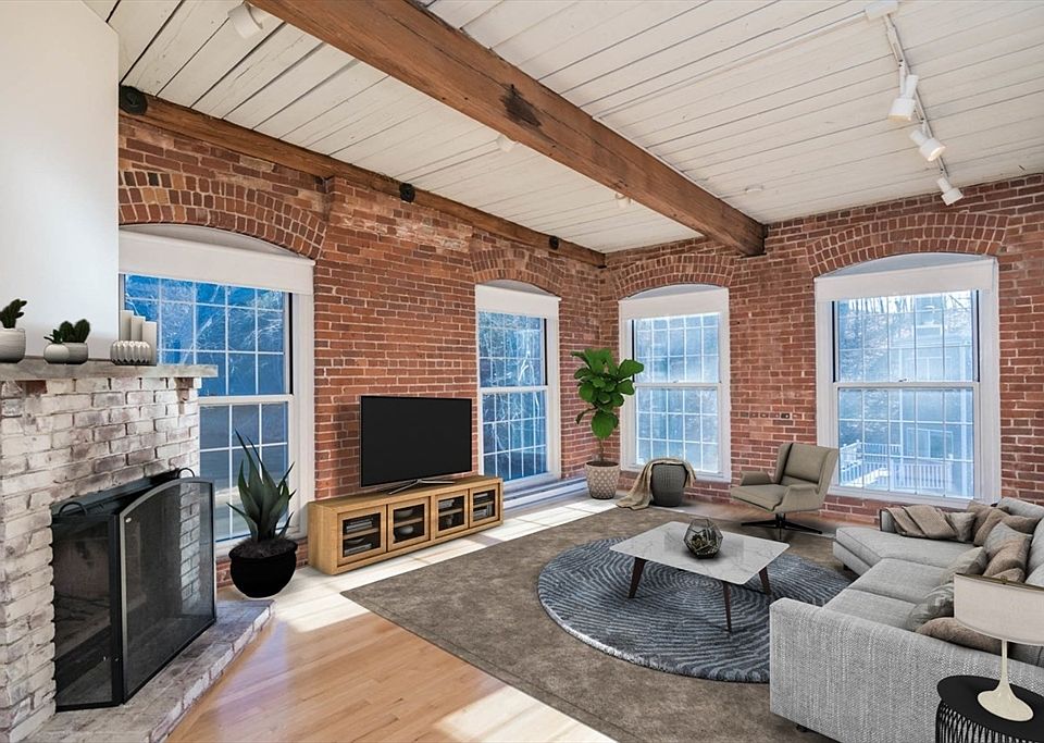 Dramatic and light filled unit at ........THE MILL ...with full views of the pond and waterfall.Spacious living space with wood beamed ceilings and exposed brick details and fireplace.The primary suite has a large deck overlooking the pond and waterfall, in suite bath and walk in closet and laundry.The second split level bedroom is on the main floor with its own bath and walk in shower.........close by to the Village Commons and Mt. Holyoke College.