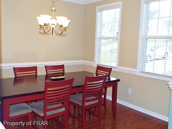 -Lovely 4 bdrm plus bonus home with 3.5 baths. Enjoy an open floor plan with formal dining & office. Kitchen has granite counter tops & tiled back splash, stainless appliances & pantry. Relax in the master suite with walk out balcony porch, garden tub & separate shower. 3rd floor suite with bedroom , bath & bonus room. Covered patio & fenced backyard, community pool, playground & minutes from Ft. Bragg.