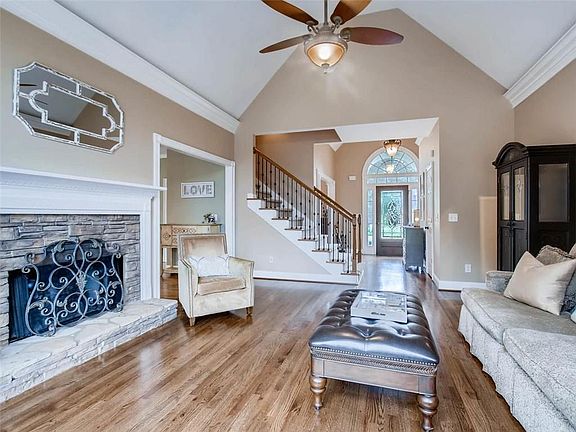 Lovely home, master/main, unfin basemt, corner lot, flat driveway. Near Lake Alatoona. Updates, upgrades (last 4 yrs): roof, paint (in & out), master BA redo, carpet upgrade, hardwds (new stain/ refinish). Lg fam rm windows. Prop faces W: deck PM shade. Lg DR formal touches, spacious. Kitch well-lighted, stain cabs, granite, S/S appls, island. Master suite serene, upgraded master BA. 2 other BRs have big closets, share lovely BA. Yard fully fenced, has gracious plantings, woods. HOA would OK 2nd driveway for boat door to be 3rd garage. Lg attic (w/stairs) over garage.