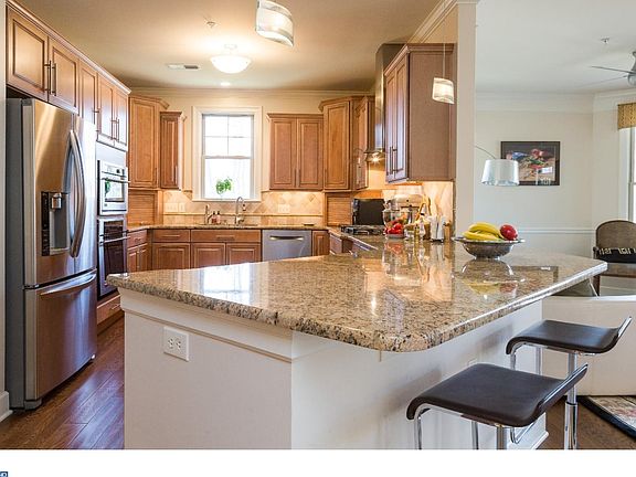 Beautiful sought after Ethan model in perfect condition with lots of upgraded finishes. Entry foyer with coat closet opens to living room with 9 foot ceilings, gas fireplace and french doors to corner terrace. Wide planked hardwood flooring throughout, crown molding in every room. Great cook's kitchen with lots of workspace and storage, stainless GE MOnogram appliances, granite counters, undercounter lighting, wine/beverage refrigerator, pantry and work desk. Den/office, dining room, powder room, laundry room with front loading washer and dryer and laundry sink. Spacious master bedroom with en suite bath, deep soaking tub, separate shower and double vanity with upgraded cabinetry & granite countertop, double walk in closets (all closets professionally outfitted with custom closet systems). Second bedroom is large enough to be a second master suite with ensuite bath and enormous walk in closet. This home has a large private storage closet and 2 parking spaces included. Terrazza is carefree, maintenance free living within minutes of 476 (Blue Route), I-95 and the commuter train into Philadelphia. Enjoy the clubhouse, fitness center, pool and tennis. Just down the street from the new Town Center with shops, restaurants and the new Whole Foods market to open later this year. Come enjoy Spring and Summer in this pretty corner of Newtown Square!