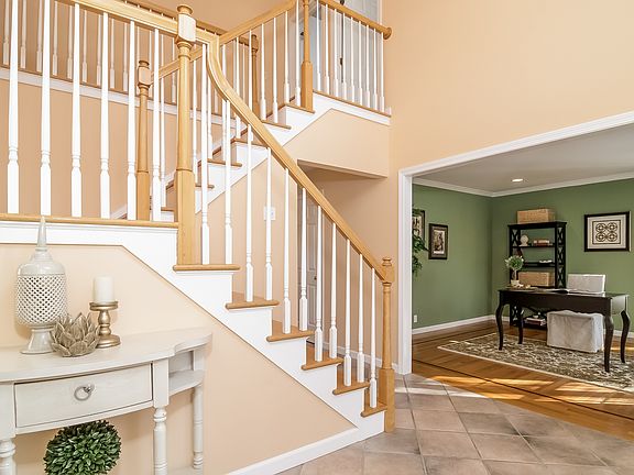 NEW PRICE! Stately 4 bedroom Colonial in pristine condition - all 4 bedrooms are located on the second floor, along with laundry facilities and large bonus room. First floor layout has the Kitchen (granite counters), Dining Room, Office / Den, Family Room and wonderful screened in porch that hosts a huge hot tub. Partially finished walkout basement, with full bath, provides more room for you to spread out! There are hardwood floors throughout, AC, freshly painted, new carpeting, wonderful outdoor deck off kitchen / family room. A stone walkway from the deck invites you to swim in a spectacular in-ground heated pool. Tasteful landscaping surrounds the home and a stone wall completes the picture! It's the perfect cul-de-sac neighborhood!