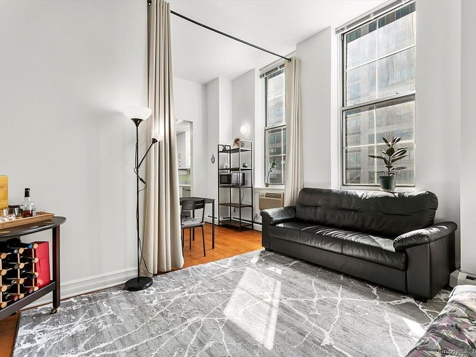 Penthouse condo in the heart of Downtown New Haven and steps to Yale. Rare two story 627 SQ FT one bedroom, 1.5 bath unit. The main level features oversized windows,~10 ft ceilings, wood floors and amazing natural light. Spacious living room opens into a small area perfect for dining. Sun drenched remodeled kitchen with white cabinets, stainless appliances and corian countertops. A remodeled half bath completes the main floor. A staircase leads to the second floor primary suite with wall to wall carpeting, ample closet space and a beautifully remodeled bathroom with a large shower. Shared laundry in the basement. Heat & hot water are included in the monthly condo fee of $558. The complex offers secured entry, two elevators, fitness room, conference room and package delivery room. Steps to Yale, Downtown New Haven, restaurants, amazing shopping & more. Look no further, this chic condo has it all!