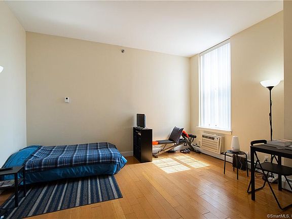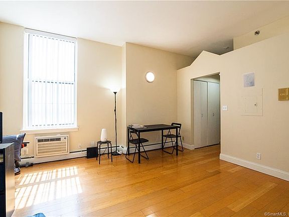 Incredible location in Downtown New Haven. Studio unit with high ceilings and in wall AC. Efficient living at its best. Building amenities include elevator, fitness center, laundry, sitting areas, and intercom system. Additional storage and parking may be available for additional cost. Heat and Hot water included in the HOA fees.