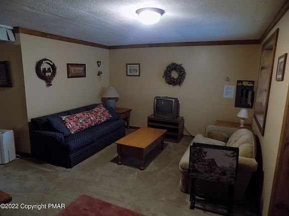 Ready to move in Cute 2 Bedroom, 2 Bath ranch with finished basement, woodstove, all furniture and appliances included, Monitor heating system in basement, water softener, low taxes $2181 per year, just a couple of blocks from the main lake, gold carts allowed. Dues $1120 per year includes garbage pick-up, use of 5 lakes, 2 pools, tennis, 24 Hour guarded gates, near all major Pocono attractions