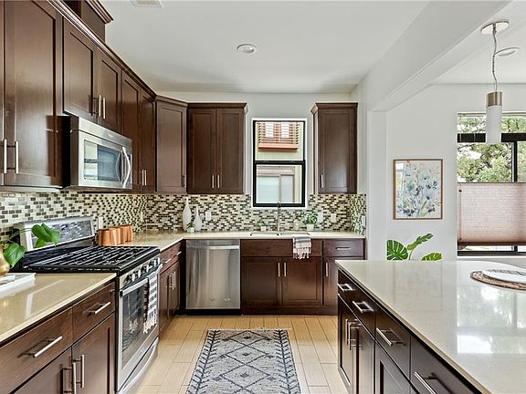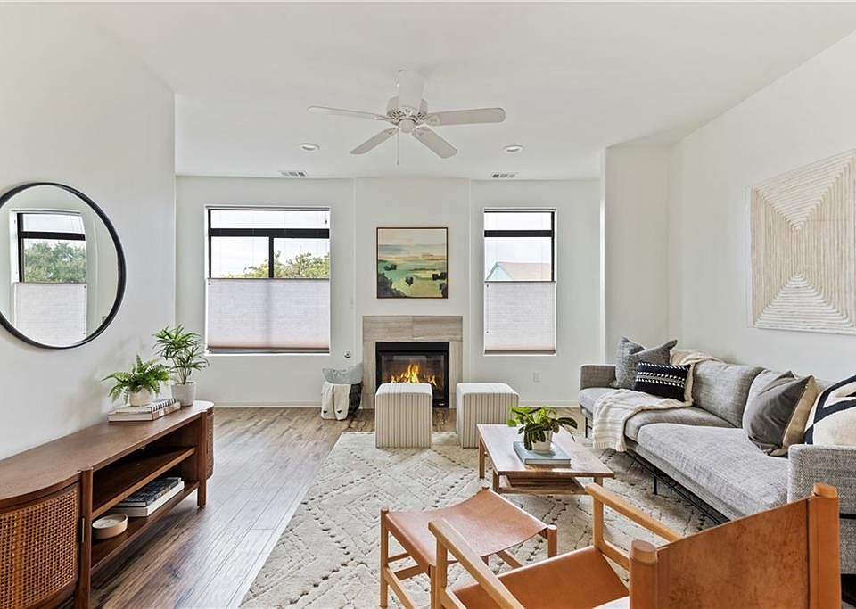 Modern lock & leave condo, immaculately maintained by original owner, ready for its next chapter. Three stories: First floor includes the attached two-car garage and private outdoor space in back (accessed through garage). Front door entry on ground level leads to staircase up to second floor with kitchen, living & dining area, laundry room/pantry, and half-bath. The spacious kitchen with stainless steel appliances features a breakfast bar perfect with 2-3 counter stools, and the bright & airy open floorplan connects the kitchen with living / dining areas. Third floor includes both bedrooms, each with ensuite full bath, + open landing currently used as office nook. Primary suite features double vanity, soaking tub, separate shower, and upgraded "comfort height" toilet. This unit has been recently refreshed with new carpet, new interior paint, freshly cleaned windows, and power-washed exterior. Upgrades include wood flooring on staircases, custom window coverings. This quiet condo community has friendly neighbors and is ideally located between S. Congress Ave. & S. 1st Street and all they have to offer (great shopping, coffee, and food!). Nearby conveniences & attractions: HEB - 0.4 miles, St. Edwards - 0.3 mi., Curra's Grill - 0.6 mi., Summer Moon Coffee - 0.7 mi., Cosmic Coffee - 0.8 mi., Bouldin Creek Cafe - 1 mi., Thai Fresh - 1.3 mi.... I could go on and on! Excellent spot, right in the middle of everything.