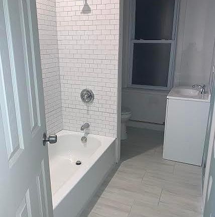 2 bedroom 1 full bath fully renovated two-level apartment. WALKING DISTANCE TO TRAIN AND BUS. Modern stainless steel appliances, quartz countertop & plenty of storage space. Updated painted walls and floors. Kitchen space with pantry closet, 4 season room, dining room, living room, full bath, office space, and two bedrooms. Laundry in basement/one parking spot. Month and a half security plus first months rent. No realtor fee. Open house 1-3pm Sunday 3/6 Renter pays for all utilities except for water