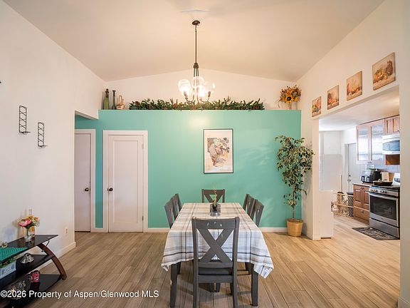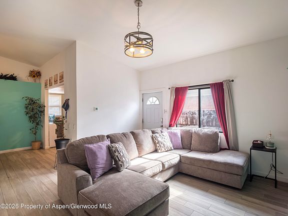 124 Daniel Avenue | Rifle — Originally built as a duplex and now configured as a 4-bedroom, 2-bath home offering a functional layout, upgrades in key areas, and a fully fenced yard with rear access. The main living spaces feature vaulted ceilings and connect to the kitchen with stainless steel appliances, including a gas range, plus a walk-in pantry for added storage. Newer hard-surface flooring runs throughout most of the home (primary bedroom is carpeted). Both bathrooms have been upgraded, and a dedicated laundry room adds convenience. The primary bedroom includes an additional bonus room (previously an oversized closet) — ideal for office, hobby space, nursery, or extra storage.