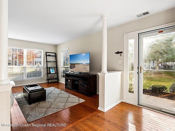 RARE FIND! Fantastic, Lg. UPDATED END UNIT in sought after Hidden Meadows. Highlights incl. NEWER - Kitchen & Baths, flooring, lighting, smart features, HWH and roof. Comfortable, open flow w/ plentiful light. Custom modern Kitchen boasts white shaker cabinetry, granite tops, SS appliances, + island w/ room for seating. Sliders open to rear fenced deck w/gas grill hookup. Primary Suite features vaulted ceiling, custom WICs, stunning En-suite spa-like bath w/ dual vanity, & oversized shower. 2 add'l flexible spacious BDRMS w/custom closets. Convenient 2nd Fl. Laundry. Residents enjoy a host of amenities incl. beautiful pool, tennis/pickle-ball, bocce, playground & more. Fabulous location close to beaches, NY trains, shopping, dining, & all the NJ Shore has to offer. A Vacation lifestyle! END UNITS are the most desirable design offering an abundance of natural light and privacy. This pristine 3 BR 2.5 BA home is in a prime location within Hidden Meadows. Don't miss this unique opportunity to live in a top community near the Jersey Shore. Complete with a private deck and stunning rear property, this home is simply the best! Sf approx
