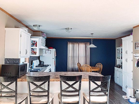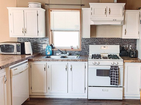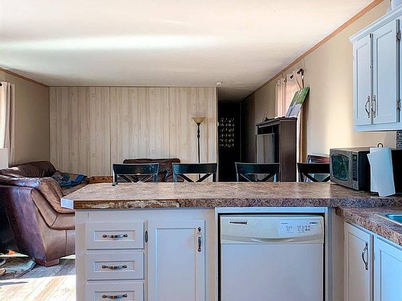 Walk in to this open concept home with beautiful newer flooring. This home features 3 bedrooms and 2 bathrooms. The largest bedroom has a walk-In closet and full bath. New carpet in two of the bedrooms. New shingles and water heater in the last year! Enjoy the large deck for your grill or patio furniture! Lot rent is $370/month and includes water, garbage and sewer. Must be approved by Airport Village.
