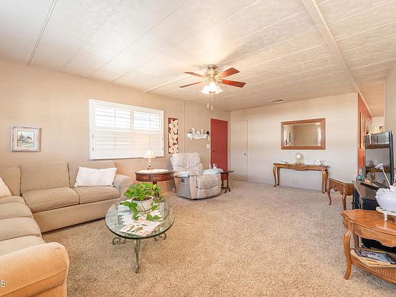 Welcome to this charming two-bedroom, two-bathroom mobile home nestled within the serene gated Ojai Villa 55+ community.The open floor plan creates an inviting atmosphere, perfect for entertaining guests or simply relaxing in the spacious living area. This cozy abode boasts an array of desirable features. Both bathrooms have been updated with custom tile showers, and there is a large Den/Breakfastroom off of the galley kitchen and walk-in closet in the primary bedroom. Enjoy year-round comfort with heating and air conditioning, while custom shutters adorn the windows throughout the house, providing both privacy and style.Additionally, all appliances are included for your convenience, and updated windows offer energy efficiency and aesthetic appeal.Outside, two sheds provide ample storage space for your belongings, while inside, you'll appreciate the great views of the majestic Topa Topa mountains from the living room window. Whether you're seeking a tranquil retreat or a vibrant community atmosphere, this mobile home offers the best of both worlds.Community features include Clubhouse, Pool, Spa, RV Storage area and Fitness center.