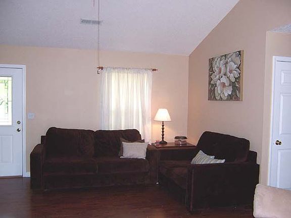 Bring the kids and their bikes! Charming traditional features: 3BR's 2 full baths. Family room with vaulted ceiling and cherry laminate flooring. Kitchen and dining area have tile flooring. Pantry in kitchen. Split bedroom floor plan, large master bedroom with cherry laminate floors. Private back yard with patio- perfect for outdoor enjoyment and entertaining. Large over sized two car garage with front entry.
