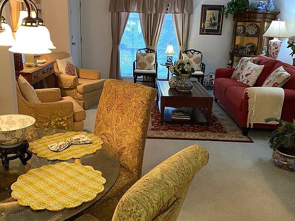 This home is on leased land with a monthly lot rent. Contact listing agent for a showing of this exclusive listing. Outstanding home in The Hamptons on the 7th Tee! You will love this mostly furnished home with newer plumbing, newer AC, newer roof and even new paint! Over 1,500 sq ft of living space plus a large lanai complete with a beautiful eat in kitchen with newer appliances, glass and wood cabinets. Large bedrooms including a master suite with step in closets, sitting room and a huge master bath. Tile and plush carpeting through-out. Great views of the ponds and golf course from Lanai. Attached shed, patio area, carport, EVEN COMES WITH A GOLF CART!! ABOUT THE COMMUNITY The Hamptons Golf and Country Club has an activities director that creates a monthly calendar of activities, there is something to do everyday! Newly updated/renovated clubhouse with a library, exercise room, billiards room, ball room, computer center with free WIFI, card tables, game room, TV room, recreation hall and a banquet hall. There are plenty of outdoor amenities to enjoy updated heated swimming pool, and hot tub, lighted tennis and shuffleboard courts, horseshoes, half court basketball, pickle ball, bocce ball, stocked ponds for catch and release, and more! Dog park for your fur-babies! RV and boat storage, pet areas The Hamptons Golf and Country Club is a prestigious golf course community and a golfers dream come true! Golf, golf, & more golf right at home! 18-Hole Golf Course, Putting Green & Golf Pro Shop All listing information is deemed reliable but not guaranteed and should be independently verified through personal inspection by appropriate professionals. American Mobile Home Sales of Tampa Bay Inc. cannot guarantee or warrant the accuracy of this information or condition of this property. Measurements are approximate.The buyer assumes full responsibility for obtaining all current rates of lot rent, fees, and pass-on costs. Additionally, the buyer is responsible for obtaining all rules, regulations, pet policies, etc., associated with the community, park, or home from the community/park manager. American Mobile Home Sales of Tampa Bay Inc is not responsible for quoting of said fees or policies.