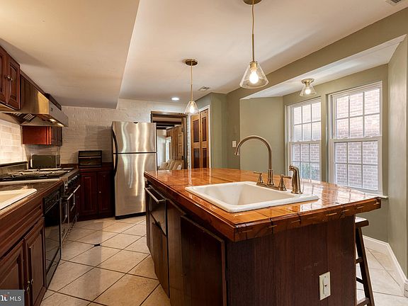 A charming three-story, three bedroom rowhouse that offers character and convivence on the most desirable, tree-lined cobblestone street in Federal Hill. A brand-new rooftop deck was completed in May 2024, offering fantastic views of the Inner Harbor waterfront and skyline and a perfect vantage point for Fourth of July fireworks. Enter the home through the wide living room with two fireplace mantels, offering plenty of room for entertaining adjacent to the kitchen and a dining room/family room at the back of the home leading out to the backyard. Primary bedroom faces backyard with a walk-in closet and en-suite bath. Two other bedrooms offer plenty of space for family and guests. Both bathrooms were renovated in 2023, one with an open concept rainfall shower, a free-standing soaking tub, floor-mounted faucet, and Carrera marble tile throughout. Kitchen offers 48" commercial Viking range with six burners and a 12" griddle with dual fuel ovens. Sophisticated Pottery Barn chandeliers and West Elm lighting fixtures have been installed throughout the home. Owners have installed a new heat pump (2024), new Pella front windows (2024) and a new flat roof (2023). Top public elementary/middle schools located nearby on the Southern Baltimore Peninsula: Fed Hill Prep, Thomas Johnson and Francis Scott Key. The neighborhood offers a wonderful sense of community amongst friendly neighbors.