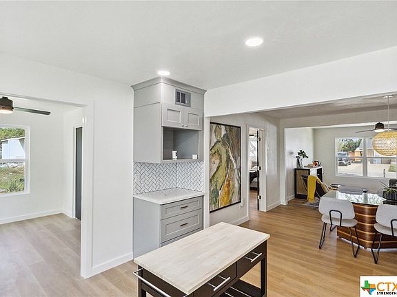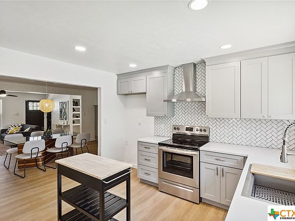 A single-story modern luxury remodel in Harker Heights - just 2 blocks from Elementary School, Kern Park, Movie Theater & Market Heights shopping and dining! Every surface thoughtfully selected by an interior designer, a must-see! A stunning kitchen with all new stainless appliances, new cabinets, quartz countertops, recessed lighting, herringbone backsplash, and a picture window over the chef's sink. All-new luxury waterproof vinyl floors throughout - no carpet! The primary bedroom features a bonus flex room - dressing, office, vanity, or reading room w/2 closets! Amazing bathrooms with new quartz vanities, designer fixtures, custom tile, and recessed medicine. All-new Hardie cement lifetime siding and all-new energy-efficient windows. Enjoy the outdoor space with two large concrete patios, and a fenced backyard. New electrical panel. Less than 10 miles from Fort Hood, and several homes undergoing renovation, indicating the potential for growth in the area!
