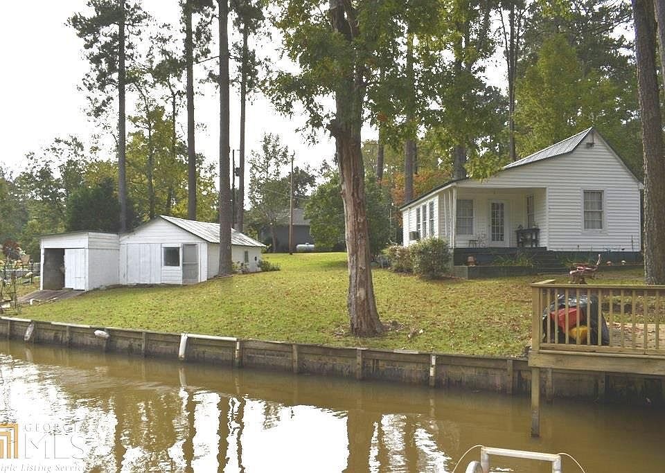 Located near the dam in Butts Co. Sought after area with beautiful water and views. Escape to your weekend cozy cottage on the water. Quaint well built 1945 cottage with privacy and future options for building lot on a level lot; concrete seawall, covered patio, boathouse and shop at water's edge, floating dock, plush lawn, mature trees.