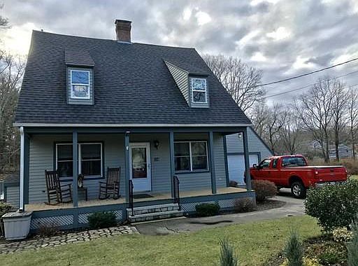 One family 2 bed 1 1/2 bath Kitchen Dining room Living room with fireplace insert Family room with pellet stove Attached garage Large shed with garage door 3/4 of an acre Large deck Front porch