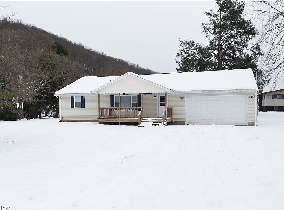 Step into this beautifully remodeled 2-bedroom, 2-bathroom home designed for comfort and convenience. Featuring main-floor living, this home boasts an open and updated kitchen with spacious granite countertops, ample storage with soft-close cabinets and pull-out drawers, and nearly-new appliances. The living room is warm and inviting with an adjoining dining area that makes entertaining a breeze and built-in shelving and recessed lighting that adds a modern touch throughout the home. Both bathrooms are fully equipped with walk-in showers featuring integral seating, while the master bath includes a double vanity for added space. The home is finished with elegant wood and tile flooring throughout the main level, combining style and durability while main-floor laundry offers added convenience for day-to-day living. The full unfinished basement provides endless potential for your design ideas, whether it’s a home theater, gym, or additional living space. An attached double-car garage completes the package, offering secure parking and storage. Enjoy the outdoors year-round with front and back covered porches, perfect for relaxing or entertaining. This move-in-ready home combines modern amenities with timeless charm—don’t miss the opportunity to make it yours!