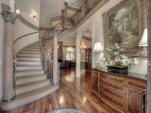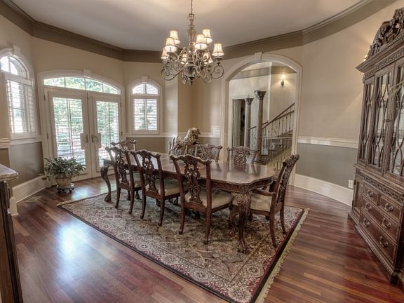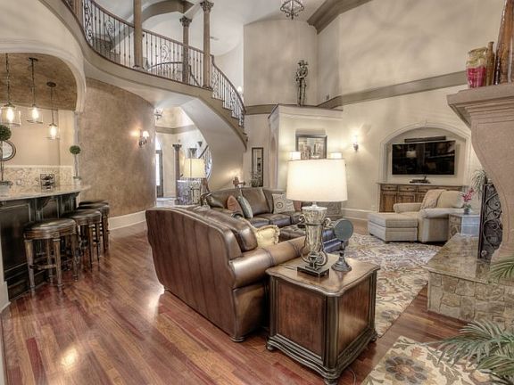 Exquisite gated estate home located on a quiet tree lined cul-de-sac street. Professional landscaped lot and circular drive offer an extremely elegant approach. This home features three full levels of living space with extensive upgrades. Enter through the gracious double doors and feast your eyes upon grace and elegance. Designer touches are apparent throughout and include custom corbels, hand milled oversized mouldings, arched openings, solid wood doors, travertine tile and site finished hardwood floors. Host elegant dinner parties in the formal Dining Room. The chef's kitchen is perfect for the family that loves to entertain. Furniture grade cabinets are accented with glass fronts and exotic granite. An oversized island lends a grand staging platform for the ultimate buffet! A separate full bar with seating for 6, a beverage center, and beautiful cabinetry is located just off the Kitchen. The spacious breakfast room overlooks back yard and offers access to the beautiful porch complex with a stone wood burning fireplace. Also conveniently located near the main living area is the butler’s pantry and laundry. Master suite is located on the main and offers, beautiful built in bookcases, trey ceiling, hardwood floors and abundant natural light. The expansive master bath features marble floors, expansive double vanities with granite counter tops, walk in stone shower, fireside soaking tub and access to office/sitting room. Complete your tour in the finished Terrace Level offering a fireside Rec Room, Game Room, and plenty of storage.