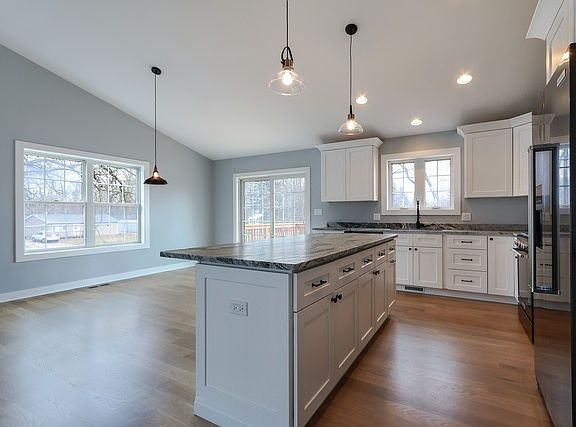 **Completion date of 9-30-22 or sooner**Midwest Lifestyle Homes introduces another remarkable design in a beautiful community centered around Island Lake! Featuring a stunning entry with a milled staircase, white spindles and oak stairs. Gorgeous eat-in kitchen unfolds to the living room with vaulted ceilings, recessed lighting and buyers choice of hardwood floor stain. The incredible kitchen is designed with a breakfast bar, sink overlooking yard, 36 inch cabinets, granite selection of buyers choice, pantry with custom built-ins and sliding door to deck. Sprawling main floor master suite with tray ceilings, crown, large walk-in closet with custom built-ins, shower with 2 heads and single vanity. Main floor also includes 2 additional bedrooms each with custom closet built-ins and a full hall bath. Expansive lower level family room leads to 4th bedroom, full bath, laundry room and a 2-car garage with polyurethane floors. Efficient amenities; 2x6 walls, energy heels, draft stop, Anderson 100 line windows & 90% efficient Rheem furnace.
