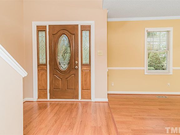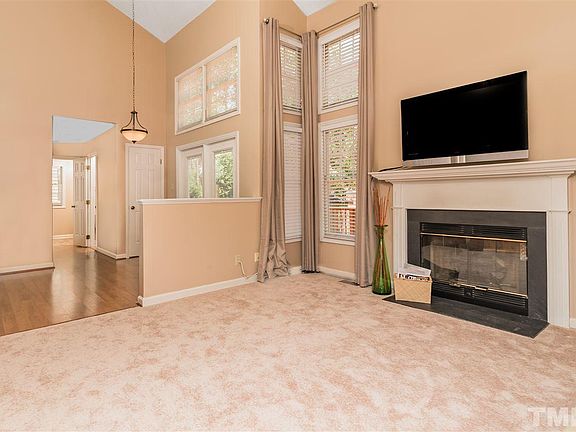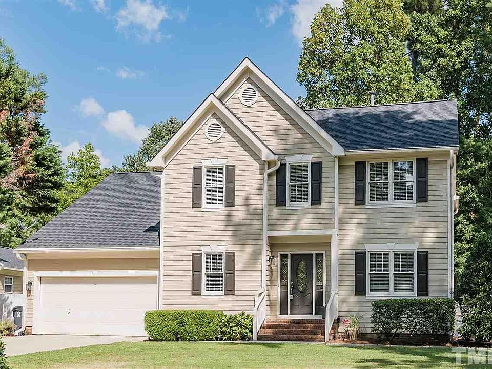 Perfect location! Updated, move in ready home on a .4 acre, flat, fenced lot backed with fast growing Leyland Cypress for natural buffer. 2017 Carpet, 2015 shingles, 2014 ext paint, 2013 tile in 2 bathrooms. Updated fixtures, granite in kitchen, tile backsplash, stainless appliances. Family room with gas log fireplace. First floor master suite w/updated en suite bath. Three additional bedrooms & bonus room on the second floor. French doors to 19x14 deck. Close to Shops at Park West Village, RDU & RTP.