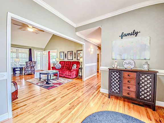 This stunning all brick home in Plantation Point offers a very inviting split floor plan! Step inside to a spacious foyer enhanced with updated fixtures, as you are greeted by beautiful hardwood floors throughout the main living areas. The family room features cathedral ceilings, brand new gas logs and a plethora of natural sunlight. The sizable primary bedroom boasts trey ceilings, while the lavatory offers ceramic tile, a double sink vanity, separate shower, soaking tub and a very generous walk in closet! There's a built in secretary beside the butlers pantry and both the kitchen and bathrooms offer new luxurious granite counter tops. While the kitchen offers its own breakfast area, this home also generously boasts a formal dining room, featuring wainscoting and custom wall coverings. This home also offers a spacious laundry room, a built in central vacuum system and a spectacular heated & cooled Carolina room! Resting on .80 of an acre, this magnificent property offers 3 total bedrooms, two full baths, two car garage, a level manicured lawn, a fenced back yard and there’s additional space for parking. This remarkable property is located just minutes to Cherokee National Golf course, I-85 and only one hour to both Greenville and Charlotte NC