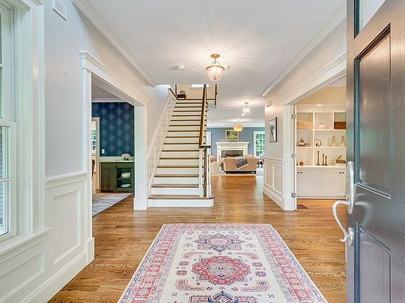 Much-admired curb appeal sets the stage for this exceptional 5 bed, 5.5 bath property on a tranquil cul-de sac abutting miles of conservation land & trails. Outdoor entertaining areas include expansive bluestone patios; showcasing a kitchen, custom built fire pit and outdoor shower. Beautifully designed chefs kitchen and family room w/custom-built ins, sun filled office space, formal living room and stylish dining room complete the 1st floor. Four bedrooms on the 2nd floor include primary suite with two walk in closets and a luxurious & well designed bathroom. Two additional bedrooms share a Jack and Jill bath as well as a fourth ensuite bedroom to complete the 2nd floor. Spacious and private bedroom suite on the 3rd floor offers the perfect retreat, ideal for an au pair, guest or 2nd home office. A thoughtfully designed finished lower level includes a full bath, play room and custom designed gym space. This home is the perfect combination of sophistication, elegance and comfort!