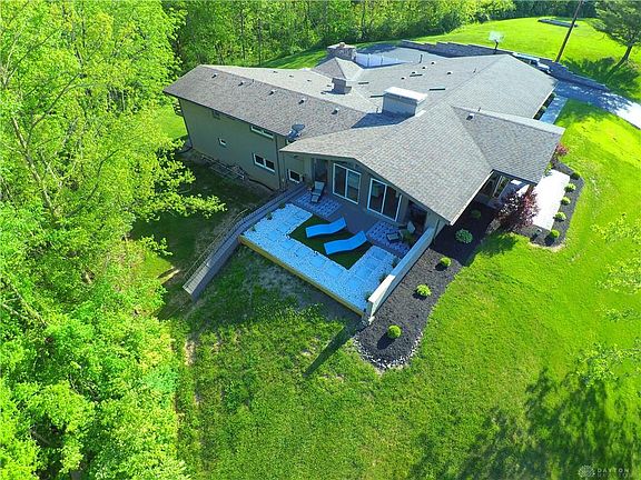 This custom dream home is absolutely stunning! You will instantly feel welcomed as you enter this spectacular home. The main living room has vaulted ceilings, wood burning fireplace, and is adorned with natural light. Just outside of the living room you will step out onto the new relaxing patio. Enjoy your morning coffee as you watch the sunrise. The kitchen is a chef's delight with granite countertops, huge center island, and one of four fireplaces. Comes complete with all appliances including gas 6 burner cooktop, Sub Zero freezer, dishwasher, convection oven/microwave, wall oven, and refrigerator...all stainless steel. Dining room is large and can accommodate any size family! Beautiful solid wood floors on main level lead to the private master suite. Huge 20x12 bedroom has its own balcony with a beautiful view of the yard. This master bath has double vanities, HUGE walk in shower, and tons of storage/closet space plus a heated marble tile flooring. There are two additional bedrooms on the main level plus another updated bath with double vanities and half bath. Downstairs you will find three more bedrooms plus another updated full bath. Follow the side doors to your entertainment oasis including huge indoor & inground pool. The ceiling has been updated to knotty pine...just beautiful! There is a wood deck surrounding the pool. Enjoy your beverage of choice while relaxing at the custom concrete bar. You can also enjoy another wood burning fireplace with stonework. Want to take the party outside? Just open the glass overhead garage door leading to the enormous deck and gorgeous, private backyard. Outside is a peaceful serene atmosphere with just over 1.6 acres. We are not done yet! There is a rec room or family room in the basement plus a workout room and fourth full bath with rainfall shower head. Perfect after a swim or exercise. BRAND NEW ROOF with complete tear off and new sheathing completed in July 2022. Peaceful and quiet but close to everything!
