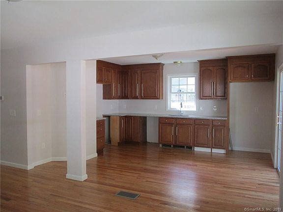High ranch set on dead end street. 3 bedrooms, Updated tile bathroom. Spacious kitchen with granite counters. New hardwood flooring. Freshly painted thru-out. Finished lower level with 1/2 bathroom & possible 4th bedroom. 1 car attached garage. Deck overlooking level, fenced in yard with additional 2 car detached garage. Great commuter access.