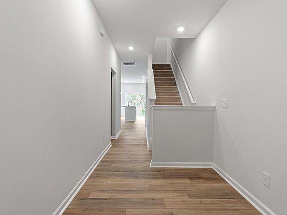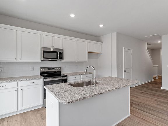 Welcome to Your New Home at Georgia's Landing! This beautifully crafted 2-story townhome offers the perfect mix of comfort and style. The main level is open and airy, featuring 9-ft ceilings and luxury vinyl flooring throughout. The bright white kitchen, with its spacious sink and open flow into the living area, is bathed in natural light. The living area provides versatility for various furniture layouts, allowing you to create a space that suits your needs. The dining area features large windows that offer calming views of nature, creating a peaceful setting for every meal. Just outside, a private patio provides a tranquil retreat with tree-lined vistas—perfect for relaxing or enjoying the outdoors. Upstairs, the primary suite is a true escape with a walk-in closet, double vanity, and a garden tub with shower walls. Two additional bedrooms, along with a convenient laundry closet, complete the second floor. Nestled within Georgia's Landing, a vibrant community that offers resort-style amenities such as a pool with a lazy river, chic cabanas, a game room, and a dog park. With walking trails and playgrounds right outside your door, outdoor activities are always within reach. Plus, the HOA takes care of landscaping and exterior maintenance, giving you more time to relax and enjoy your surroundings. Ideally located just minutes from the Farmers Market District and Downtown Raleigh, Georgia's Landing offers a perfect blend of modern living and an active, connected lifestyle. This home will be ready for you in March! Call today to learn about the latest incentives and Move-in-packages