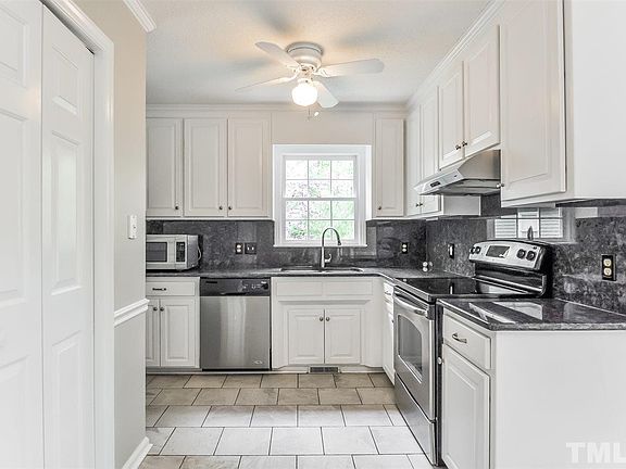 This Cary two-story cul-de-sac home offers a deck, a fireplace, granite kitchen countertops, and a walk-in master closet. Upgraded features include a new water heater.