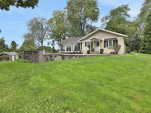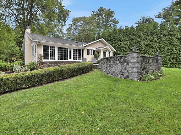 A golfer's retreat! Located on Wiltwyck County Club, this warm and inviting ranch-style property is a unique find. An open living floor plan offers easy enjoyment. The main floor features a living room with a cozy wood burning fireplace, a dining area with a wet bar and a custom kitchen with stainless steel appliances. Cook gourmet meals just steps from the beautiful yard, patio and hot tub with golf course views or sip your morning coffee in the sunroom overlooking the 11th green. Down the hall you'll find the primary suite with a full bath and generous closet, two additional bedrooms and a fully renovated bathroom. A full finished basement includes a spacious great room perfect for movie nights and two additional bedrooms, playroom or home office spaces. Full laundry room and kitchen pantry. This home wouldn't be complete without a golf cart, which is located in the garage and ready for its new owner. Stone retained driveway, professionally landscaped walkways, patios and shrubbery and a DogWatch electric dog fence. No trail fee required to access Wiltwyck Country Club. Your oasis awaits!
