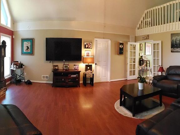 - Living Room: Fireplace, Ceiling-Vaulted, Floors-Laminate, Ceiling Fan