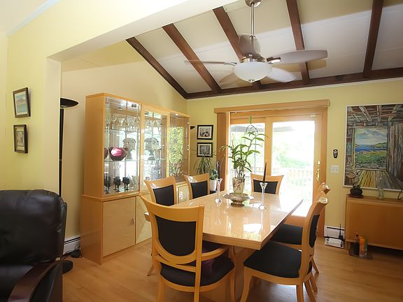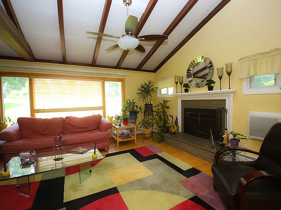 Contemporary, bi-level ranch-style home with 1,700 s/f on the upper level (cathedral ceiling w/wooden beams in living and dining rooms; wood floor throughout; updated kitchen (stainless steel appliances; custom solid maple cabinets w/sliders; granite counters; pantry), updated, retro-style hallway bath; 2nd bedroom w/sliding windows off of deck; new master suite -- large bedroom; two walk-in closets (one has a heated floor); separate linen closet; huge bathroom w/custom cabinet featuring a granite countertop w/double sinks and separate storage & laundry areas on each side; air-jet tub; large, walk-in shower w/seat; separate toilet area; heated floors; overhead fixture w/heating and fan). Third bedroom is large and opens to a gorgeous three-season room. Three-season room (could be used year-round with electric heater) -- all wood w/cathedral ceiling and glass surround (overhead fan; a/c) w/seasonal views of Candlewood Lake. The three-season room leads out to the deck (Trek flooring) which has space for lounge chairs (or a possible hot tub), storage, a grill, and a table with chairs. This is a unique home that will attract those with a creative eye and a zest for flair in their lives.