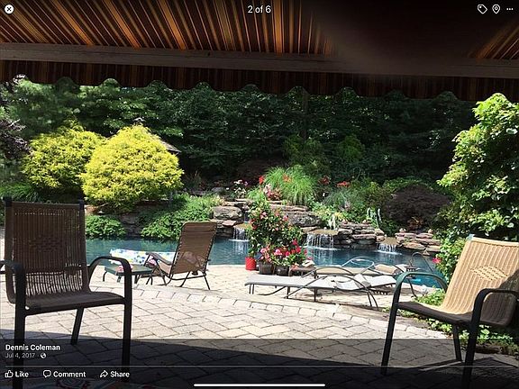 This magnificent all brick home Center Hall Ranch on an acre of exquisite property and a circular driveway features an in ground pool with a waterfall, updated with four bedrooms, four baths including a Master Suite Spa like bath/Jacuzzi, lots of glass, French doors, a newer kitchen with a fireplace overlooking the great room with soaring ceilings a stone fireplace and an outdoor kitchen. This is on a Cul-De-Sac location. Includes a three car garage.
