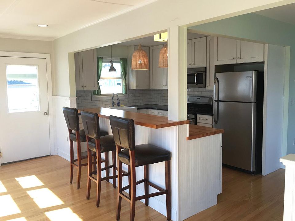 Newly renovated two bedroom, one bath Toms River home available for year-round rent in desirable Breezy Point neighborhood of Toms River. Open floor plan with light hardwood floors throughout. New kitchen with farmhouse sink and butcher block center island. Stainless steel gas stove and refrigerator. New stackable washer and dryer. Huge fenced in backyard with patio, outside shower, and custom built shed. House is located across the street from a lagoon, perfect for easy paddle board and kayak access. Five minute drive over the bridge to the beach. Owner pays for sewer. Tenant responsible to pay for utilities. Credit/backround check required to rent.