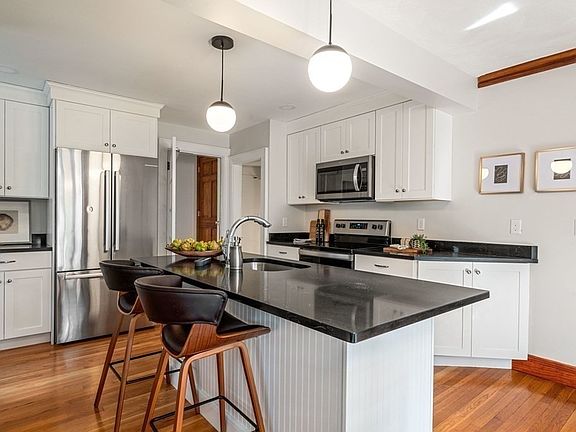 • Features: Flooring - Hardwood, Dining Area, Pantry, Countertops - Stone/Granite/Solid, Kitchen Island, Cabinets - Upgraded, Open Floorplan, Remodeled, Stainless Steel Appliances, Lighting - Pendant