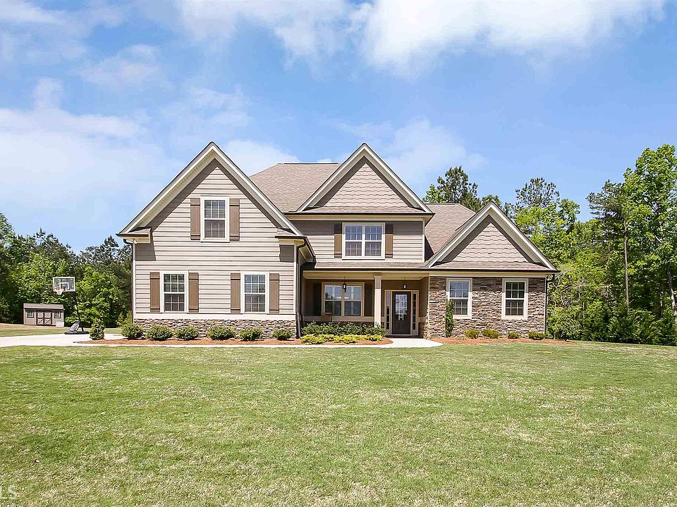 BEAUTIFUL AND SPACIOUS HOME WITH 'MODERN' OPEN FLOOR PLAN AND BRAND NEW HARDWOOD FLOORS IN NORTH NEWNAN. Large and open greatroom w/stone f/p, hardwood floors & dining area that offers judges paneling and easy access to the kitchen/living area. Gorgeous custom columns throughout main level. Kitchen has large granite island, breakfast area, stainless steel appliances of which the dishwasher is new. Spacious upstairs offers large secondary bedrooms with big closets. Massive bonus room could be 5th bedroom. Big loft area can be upstairs living / play area. Tons of storage! Ceiling fans and blinds added to every room of home. Rocking chair front porch and oversized patio in back. Fresh exterior paint. Great location in north Newnan! A must see.