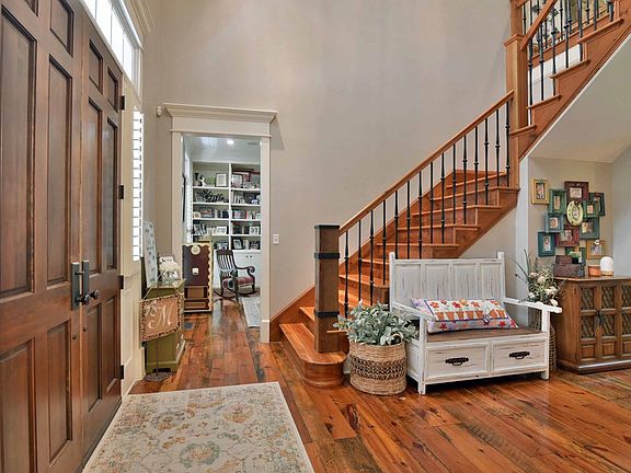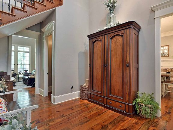 Welcome to the Prestigious Gated Neighborhood of Grand Oaks! This SHOWSTOPPER home is nestled in a wooded subdivision and has all the features you have been looking for in your next home. The notable southern architecture is adored with expansive front and back porches with large columns, ceiling fans, cedar shake shingle siding, standing seam metal roof, solid wood doors, hardy plank eves and soffits and thoughtfully chosen brick details. As you enter the foyer you take note of the GRAND ceilings and beautiful heart pine floors and accents that showcase this home! To the right of the foyer is the elegant formal dining room with one of the four fireplaces of this home. Flowing into the gourmet kitchen you instantly take note of the high-end finishes and top of the line appliances. Highlights in the kitchen: Large Window over the sink, Gas Stove with pot filler, Double Ovens, Walk-in Pantry, Granite Countertops, Large center island and custom glass front cabinets. A large breakfast room expands from the kitchen with vaulted ceilings accented with reclaimed wood and beams! There is also a cozy fireplace located here with antique style mantle. WOW! A large opening from the breakfast room flows into the family room so no one ever feels disconnected. The soaring ceilings and windows provide lots of light to fill the room while being anchored by the floor to ceiling stone fireplace. Also located downstairs is another living space (currently an office) with built in bookcases and another fireplace! The Primary bedroom will stop you in your tracks with 2 walls of windows that remind you of why you want to be in this neighborhood! The En-suite bathroom provides everything you could need with his/her vanities, a large, tiled shower and soaking tub and walk-in closet. Heading upstairs- All the bedrooms have gorgeous Pine flooring! (no carpet in the house) Two of the bedrooms share a spacious jack and jill bathroom with built in makeup/ desk vanity and walk in closet space. The third bedroom upstairs has a full bathroom that had both private and hallway access. In addition to the 4 spacious bedrooms there is a LARGE bonus room. Several other lovely features to mention: Large Landry room with sink and outdoor access, Triple Crown Molding, Reclaimed Pine Floors, Plantation Shutters, Tankless Gas Hot water Heater, Wired Workshop, Circular turn around, Double Garage, Established Landscaping, Professionally Installed Outdoor lighting, Powder Room and Dehumidifier.