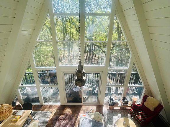Wishing your current situation was basqueing in the natural light of an A-Frame in the mountains on over an acre?This special mountain house retreat is turn-key and ready for you! Boasting tremendous natural light in the spacious great room, recent upgrades, a third story for nature-watching, ample parking for guests, split-units for summer comfort and a large lot for outdoor recreation. Perfect for city dwellers craving a stylish retreat. This unique A-frame style home has it all AND is situated in exclusive, amenity-filled gated Hemlock Farms Community. When you're finished taking in the views at home, hop over to the tennis/pickleball courts, walking trails, two outdoor pools, indoor pool, fitness center, dog park, lakes, beaches, ponds that is sought after community has to offer.