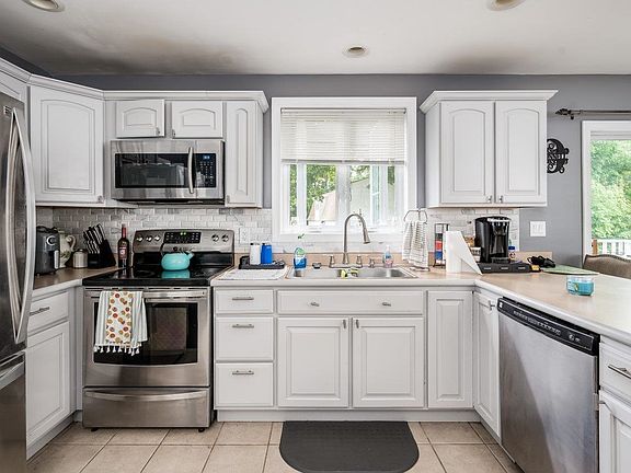 This adorable two bedroom Colonial is just what you have been looking for!  Step into the eat-in kitchen with gorgeous cabinets, a spacious peninsula with seating and sparking stainless steel appliances. The kitchen overlooks the dining area, with sliding doors to the back deck and plenty of space to entertain. The living room is open and sunny. A convenient half bathroom completes the first floor. Upstairs are both bedrooms, including the generously sized primary bedroom as well as a full bathroom. The lower level features a space perfect for a family room or home office. Located outside is a deck and patio area, perfect for enjoying in the warmer months and a fully fenced yard. Convenient location access to major routes for commuting. Come see this spectacular home today!