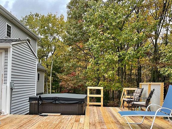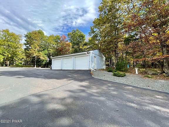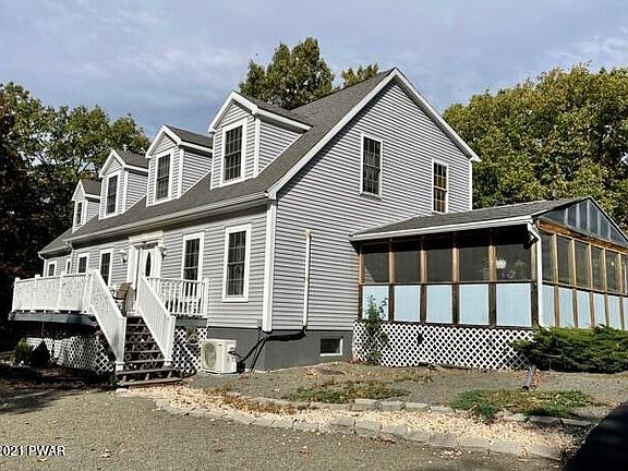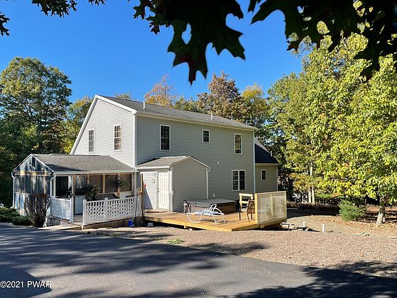 CUSTOM COUNTRY CAPE privately tucked away on an acre of land in the heart of the lake region! Access to Lake Wallenpaupack at the Tanglwood Lakes Pavilion with dock area, boat launch, and sandy beach. Dock slip possibilities too! Whether you're thinking full time living or a four-season getaway, this low-maintenance home will not disappoint! Main level features living room, den, inviting master bedroom suite, formal dining room, and kitchen w/ breakfast area and sliders to the enclosed porch. More upstairs with 3 bedrooms, a full bath, and loft area. Spend time relaxing on your full- length front deck, in the back yard's hot tub, or playing in the expansive basement family/recreation area which also offers a full bath, guest room, and office. There's room for everyone here! Bonus 3-car garage & extra wide driveway round out this must-see property. So convenient, just minutes to the Big Lake, Interstates, restaurants and shops.