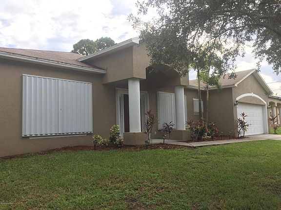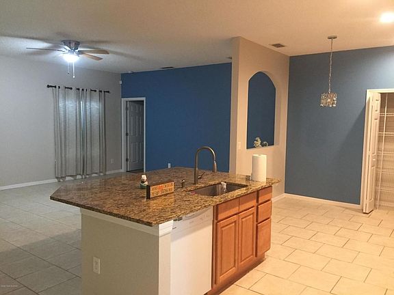 Welcome home- This is a 4-bedroom, 2-bath home with 2,000 sq ft under air, located in desirable SW Palm Bay. Built in 2005, this spacious split floor plan offers a formal living room, a large family room overlooking the kitchen, and a separate dining areaideal for entertaining. The kitchen features granite countertops and 40" upper cabinets. Both bathrooms are upgraded with granite as well. Tile flooring throughout the main living areas and carpeted bedrooms for added comfort. Additional highlights include an inside laundry room, 2-car garage, hurricane shutters, and a screened patio. Enjoy outdoor living in the fully fenced backyard. No HOA.