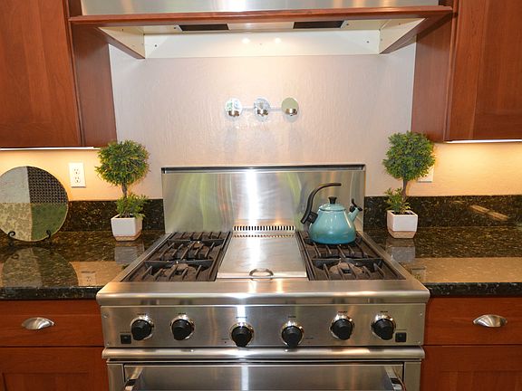 Beautifully updated throughout. Formal living room with hardwood floors, fireplace & built-in wall units. Gourmet kitchen features granite counters, custom Irish countryside painted tiles, center island with gas burners, stainless steel appliances including upgraded gas range with griddle, dishwasher, built-in microwave, walk-in pantry & desk area. Family room with wood beamed ceiling and a corner, wood burning stove with slate hearth. Large master bedroom with window seat and updated bath with double vanity, tile shower and dressing area. Additional features include, skylights, updated baths, central a/c & heat, ceiling fans, dual pane windows, indoor laundry and more. Over-sized backyard has a stamped concrete patio, hot tub and large grass area. Access to canal water.