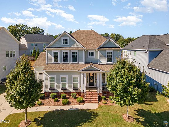 Modern luxury and practical comfort - Welcome to 124 Harmony Creek! No expense was spared when upgrading this incredible 5-bed, 4-bath home in one of Apex's most sought-after communities. With 3,239 square feet of carefully curated space, step inside to find gorgeous 5'' hardwood floors that run throughout both levels, setting the stage for elegant gatherings and everyday living alike. The heart of this home is the gourmet kitchen, featuring a large island, granite countertops, stainless appliances, natural gas stovetop, and a convection microwave/wall oven combo. The spacious primary suite is a true retreat, complete with a custom California Closet system and soaking tub. Simply move your things in with fresh paint throughout, window shades on every window, and beautiful board & batten woodwork through. The home boasts a fully encapsulated crawlspace, a whole-house water filtration system, AND a whole-house generator for added peace of mind. Step outside to your fenced-in backyard oasis, made complete with a screened-in porch and fire pit patio, stone walkways, and gorgeous landscaping. The wooden playset does convey and the landscape lighting adds a magical glow in the evenings. The 3 car garage is a standout feature, with newly sealed epoxy floors, built-in cabinetry, refrigerator, rail & bracket storage system, and even plumbing for a utility sink. The first-floor bedroom w/ full bath offers flexibility for guests or multi-generational living, while the Princess Suite upstairs provides a private retreat with its own full bath. Last but not least, this location can't be beat with easy access to Highway 540, RTP, and RDU Airport. See it for yourself today!