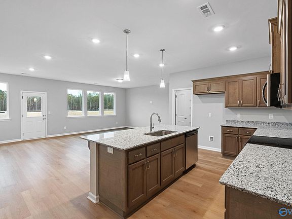 - Features: 9’ Ceiling, Crown Molding, Granite Counters, Kitchen Island, LVP, Pantry, Smooth Ceiling