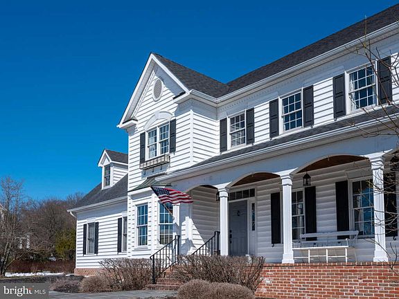 Modern farmhouse style home in the desirable neighborhood of Seasons, is perched on a gentle hill backed by preserved woods. A bluestone path leads to a large and inviting front porch that offers ever changing seasonal views of Solebury Mountain. Hardwood floors flow seamlessly from formal to casual space featuring 9 foot ceilings, study with French pocket door and a niche staircase. Decorated throughout with the popular, yet casual country feel that is enhanced with detailed crown moldings that outline the large living room, formal dining room & study. The expansive family room is embellished with custom, floor to ceiling built-ins and a companion fireplace mantle, replicated from a cover of Architectural Digest. A total transformation with a recently remodeled kitchen offering white inset cabinetry, Carrara marble counters, farm sink and Wolf 6 burner gas range. The adjoining breakfast room leads to a raised, covered porch and EP Henry patio. Unique touches throughout including 1st floor powder room and separate laundry room complete with a galvanized laundry tub on an antique table. The upstairs master bedroom is accented by tray ceilings, a raised panel wall, hardwood floors and a en suite marble bath featuring a claw foot tub, custom vanity with vessel sink and a walk in shower. Three spacious bedrooms with walk in closets share the hall bath. This house also offers a side entry garage with newer carriage style garage doors and a recently replaced driveway. New Hope Solebury Main School Campus is located 3 miles away. One Year AHS Home Warranty Included