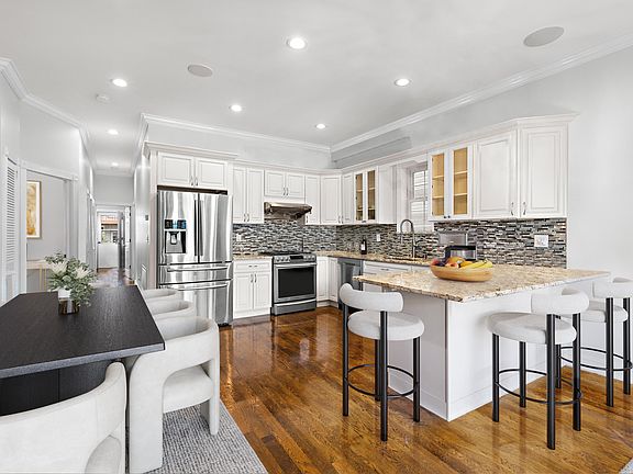 Welcome to 124 Highpoint Avenue, an elegant condo residence nestled along one of Weehawken’s most desirable streets. This south facing property overlooks the Weehawken Reservoir and was completely renovated in 2017. This is an incredible opportunity to purchase a move-in ready residence with the following features: soaring ceilings, oversized double hung windows, recessed lighting, hardwood floors, central heating and cooling, washer/dryer in unit, in-ceiling speakers, private backyard and private parking. This sun soaked 2169sf duplex layout offers an open concept kitchen, dining and living space. The generously sized upstairs bedrooms are quietly situated in the rear of the home. This includes the primary with massive walk in closet and double vanity en suite bathroom. A private office is located off the kitchen and includes a convenient storage closet. The lower level offers a wide open additional living room, 2 large bonus quarters with windows, a full bathroom, a kitchenette, storage and walk out access to both the front and rear yards. A covered deck steps down into the private landscaped backyard and onto a slate patio surrounded by perimeter planters. Transportation to NYC is located 1 block away. The NJ Transit bus to Port Authority runs every 5 mins during rush hour and offers a 22 minute commute. The Weehawken Reservoir is the perfect place to get your steps in. Its 1/2 mile walkway wraps around a tranquil body of water and boasts sweeping NYC skyline views. 124 Highpoint Avenue provides the perfect blend of suburban tranquility and urban convenience.