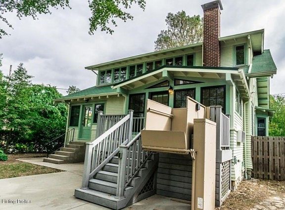 Incredible Craftsman style 2 story home in the heart of Crescent Hill. Remodel and upgrade by Kiel Thomson Company, this property was originally built in 1912 and is ready for immediate move in for the holidays. All hardwood refinished floors. There are 5 bedrooms, 4 upstairs with master bedroom and dressing room on 1st floor. Two full bathrooms upstairs with 1 full and 1 half on 1st floor. First floor flows with easy access to adjoining family room, living room, dining room to full kitchen with eat in area. Two sun rooms are also located on 1st floor off master bedroom and living room. Lots of closets in halls and bedrooms. Laundry rooms are located on 2nd floor and basement. Large basement with half bath, closets and plenty of area for storage with outside door access. Two car detached garage and driveway. Handicap lift on rear entry to house. All custom wood cabinets with soft close by Keller Thomson. New GE appliances. Marble and reclaimed pine counter tops. Custom pendant lights. All new electrical. All new plumbing. All hardwood oak first floor. All heart pine 2nd floor.