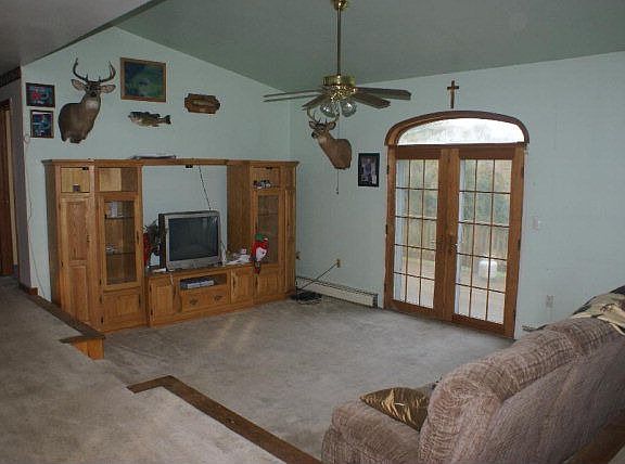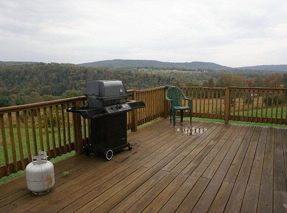 Ranch home located just outside of borough limits with beautiful view, combined kitchen/dining/sunken living room with French door leading to a deck overlooking the valley. Basement has high ceilings and lots of space. Roof on front side of house was put on in September 2011. Large yard with plenty of space for garage or barn.