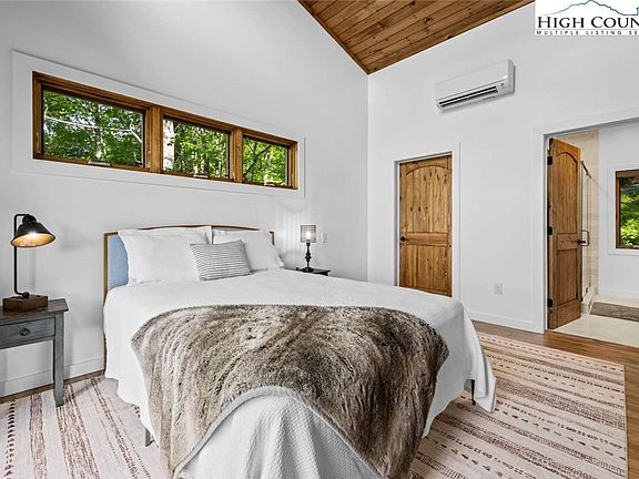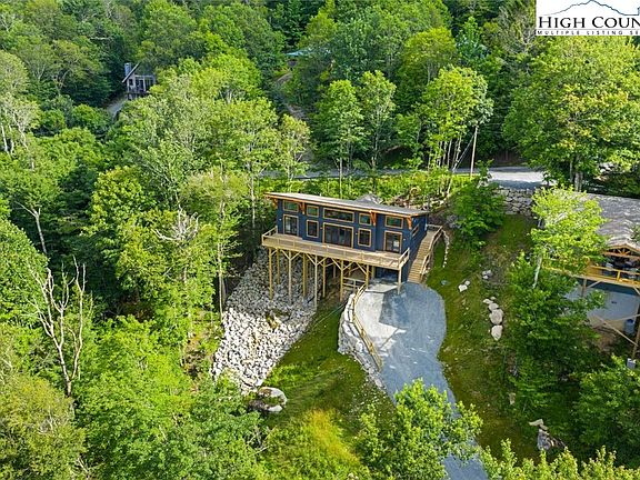 Experience the allure of mountain living in this fully-furnished, exceptional, brand-new architectural home nestled near the summit of Beech Mountain. Surrounded by tranquil woodlands, this stunning residence boasts an open, airy layout filled with natural light and breathtaking views. Unwind by the cozy fireplace or step onto the expansive deck, for relaxation and soaking in the beauty of the natural surroundings. A charming creek flows beneath the home, while the rear features striking floor-to-ceiling glass, blending indoor comfort with outdoor splendor. The interior, masterfully designed by nationally acclaimed designer Kelly Bergin, exudes simple elegance and warmth with a beautiful fireplace, heated bathroom floors, 3 climate zones, and kitchen and laundry room wall heaters. Ideally situated between Fred’s and the ski resort, this property will full-fill those seeking a balance of peaceful retreat and thrilling adventure. From the moment you enter, a serene calmness embraces you—an essential sanctuary for the soul.